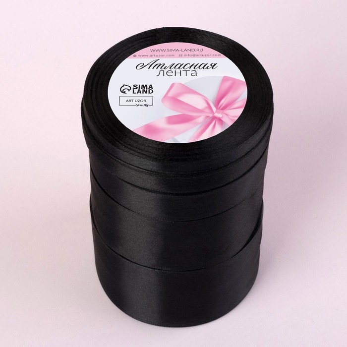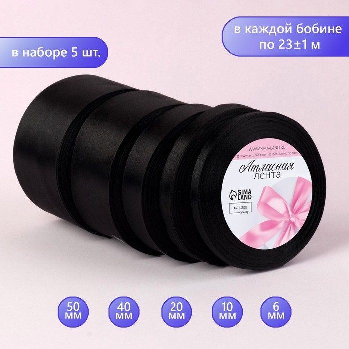 Набор атласных лент, 5 шт, размер лент: 6/10/20/40/50 мм × 23 ± 1 м, цвет чёрный