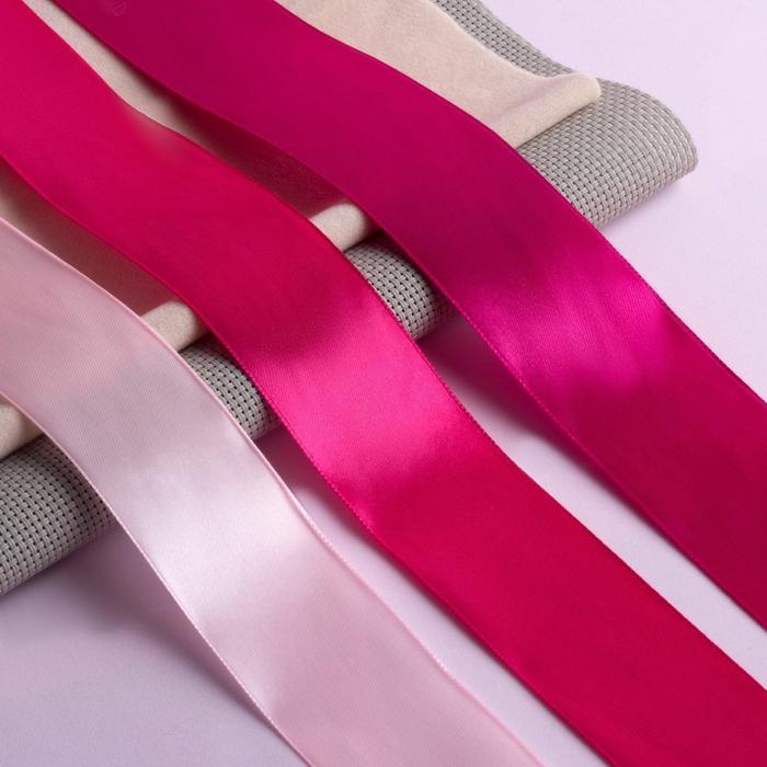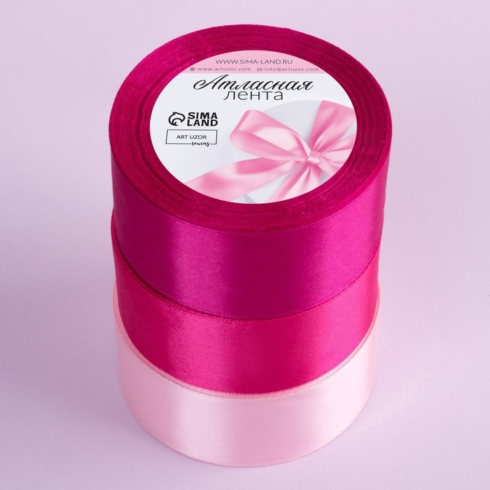 Набор атласных лент, 3 шт, размер 1 ленты: 40 мм × 23 ± 1 м, цвет розовый спектр