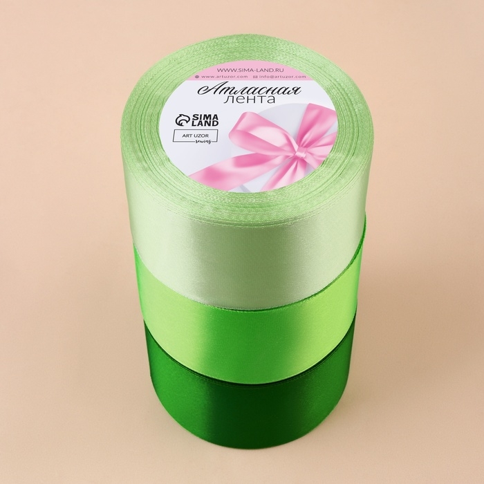 Набор атласных лент, 3 шт, размер 1 ленты: 50 мм × 23 ± 1 м, цвет зелёный спектр
