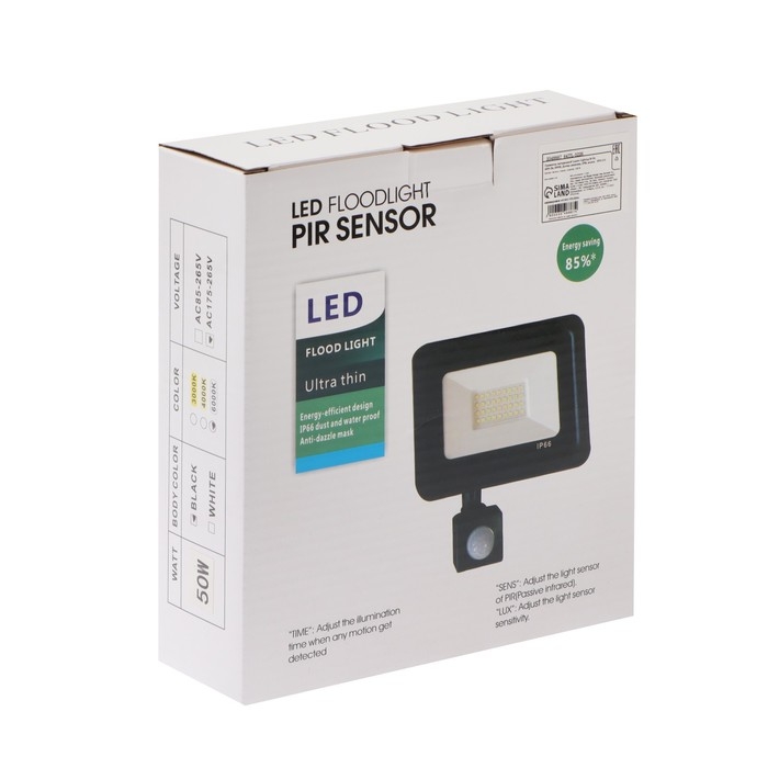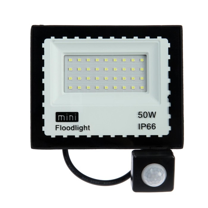Прожектор светодиодный, 50 Вт, 4000 Лм, 6500К, Датчик движения, IP66