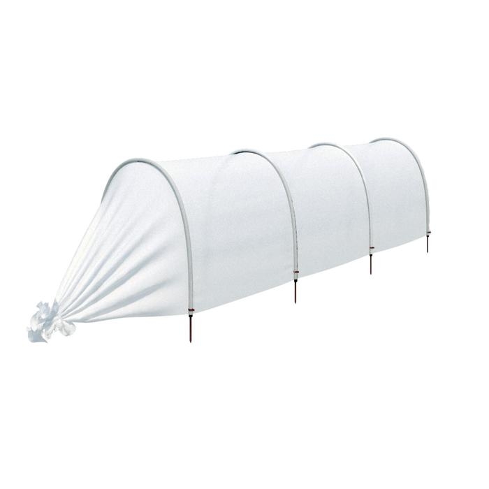 Основой для каркаса служат пластиковые дуги, устойчивые к коррозии и перепадам температур. Чехол из спанбонда имитирует тропический микроклимат. Он плотный, поэтому сможет выдержать толстый пласт снега и не повредит всходы.