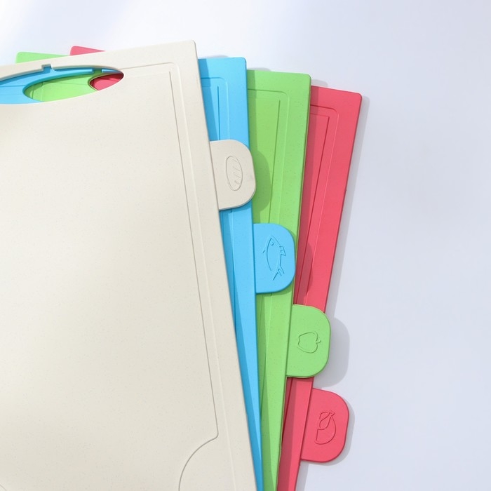 Набор досок разделочных с маркерами на подставке, 4 шт, цвет МИКС