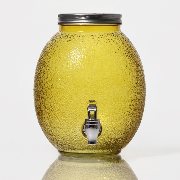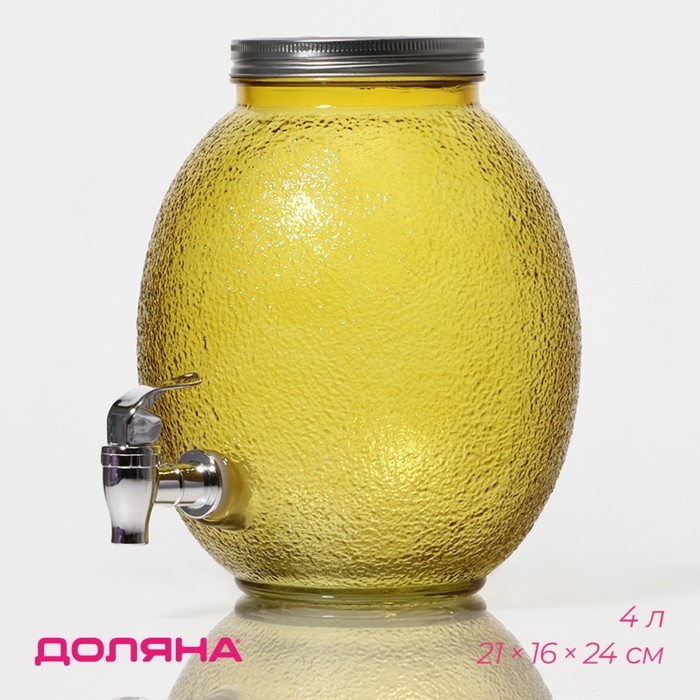 Диспенсер для напитков стеклянный «Фреш», 4 л, 21×16×24 см, цвет жёлтый