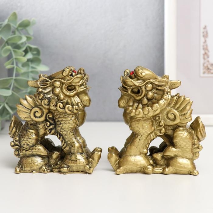 Нэцке полистоун "ПиЯО" под бронзу набор 2 шт 9х5,3х8,5 см