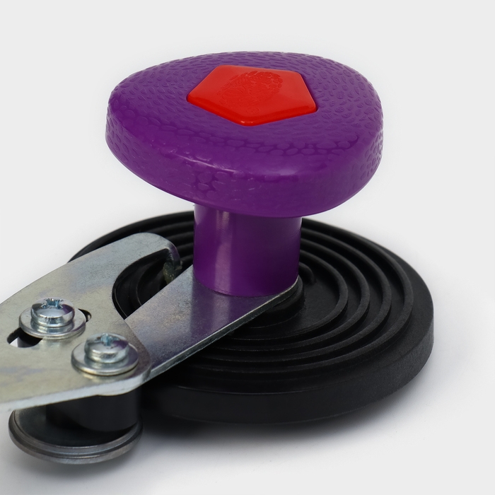 - Взяв ручку-грибок, плотно прижмите приспособление и другой рукой вращайте рукоятку до тех пор, пока ролик не упрётся в крышку.