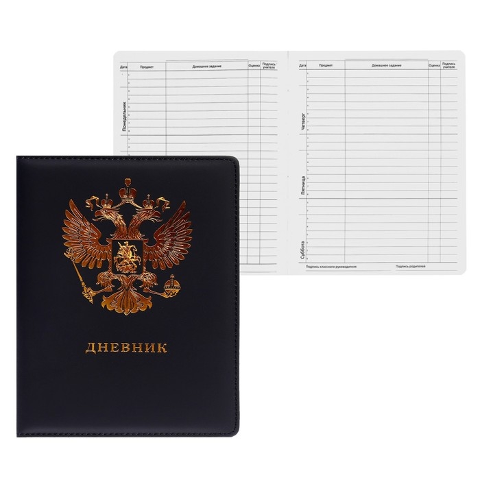 Дневник универсальный для 1-11 классов «Герб», твёрдая обложка, искусственная кожа, тиснение фольгой, ляссе, тонированный блок, 48 листов