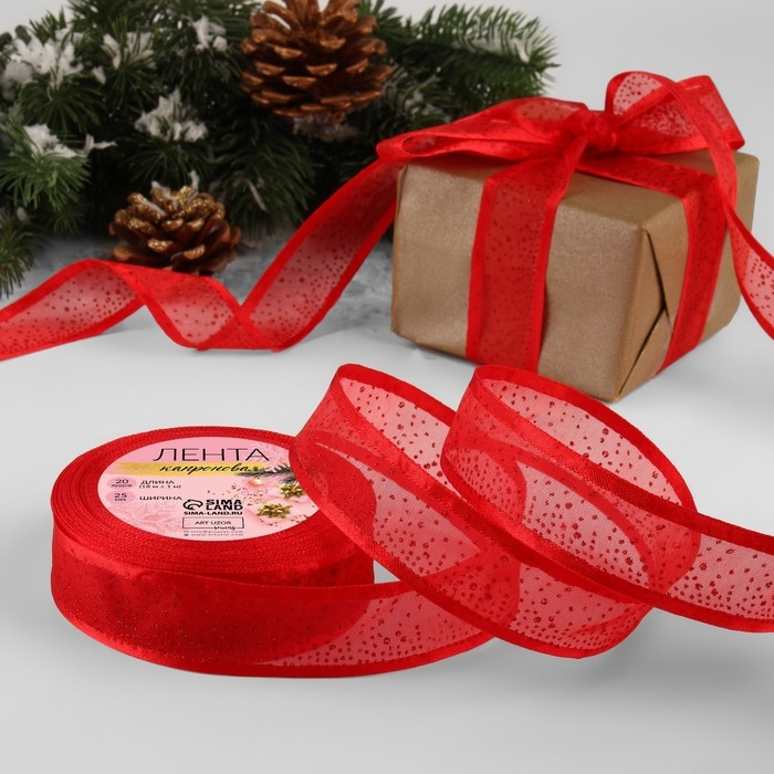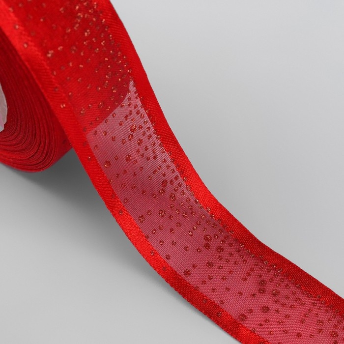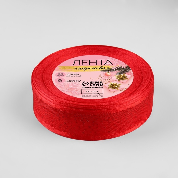 Лента капроновая «Блёстки», 25 мм × 18 ± 1 м, цвет красный