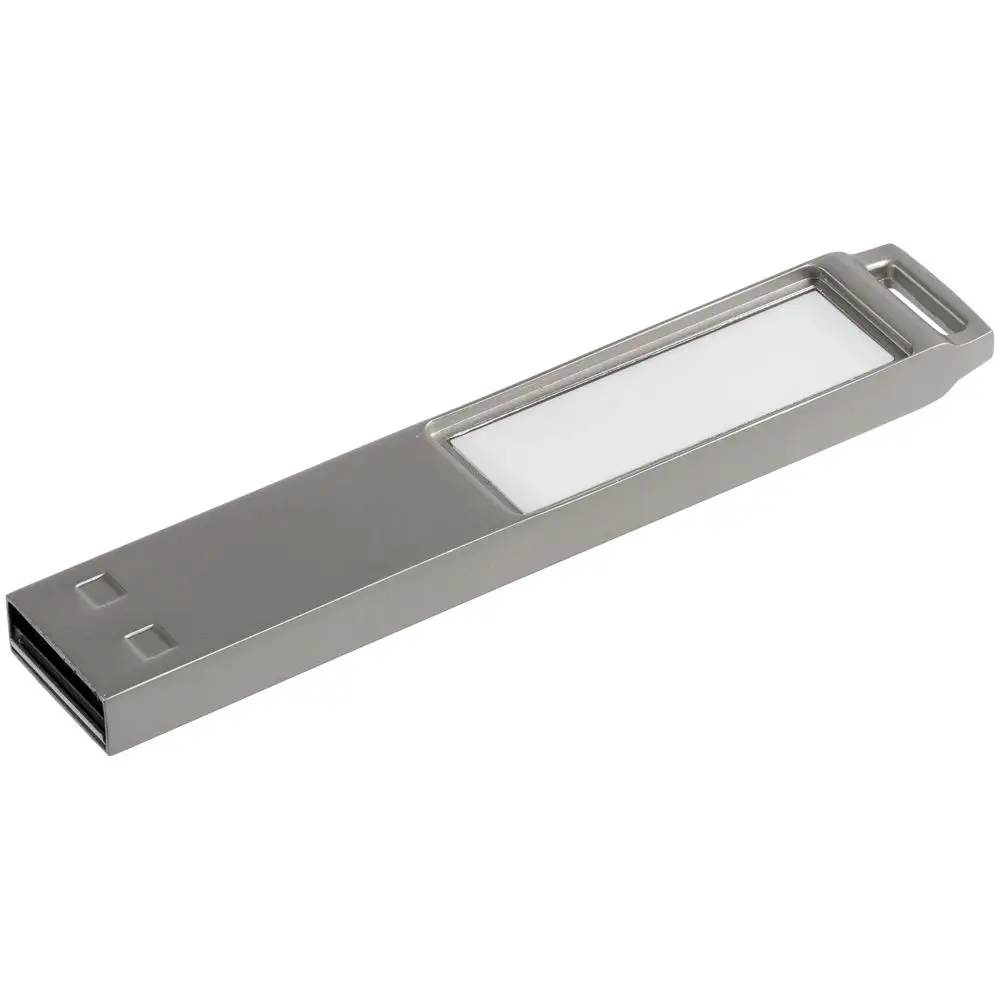 Флешка в тонком металлическом корпусе с пластиковой самоклеящейся шильдой в комплекте. Благодаря встроенной в корпус светодиодной матрице, логотип, выполненный на шильде методом лазерной гравировки, подсвечивается белым, красным, зеленым или синим в зависимости от выбранной модели.