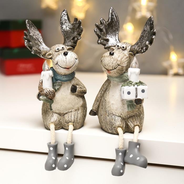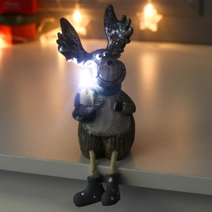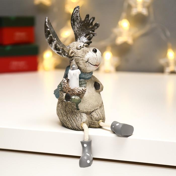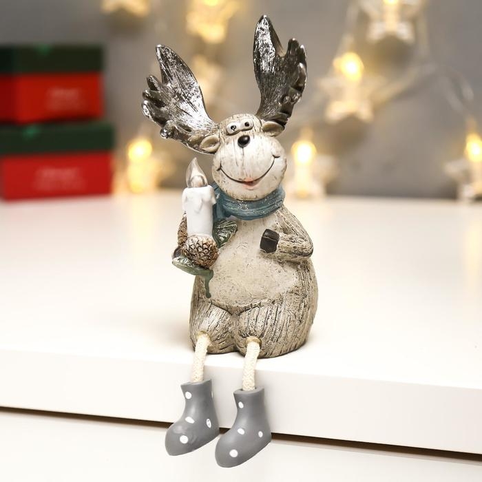 Сувенир полистоун свет "Лосик с серебристыми рогами со свечой" МИКС 15,5х7х8,7 см