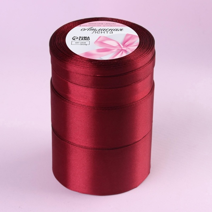 Набор атласных лент, 5 шт, размер лент: 6/10/20/40/50 мм × 23 ± 1 м, цвет бордовый