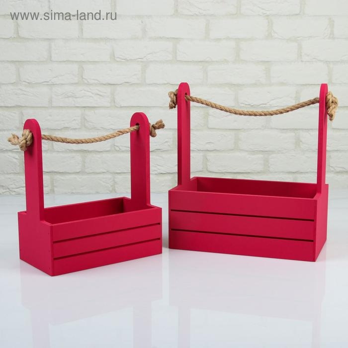 Набор кашпо деревянных 2 в 1 (25×15×30; 21×12×23 см) "Dear", ручка канат, бордо