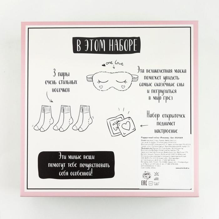 Подарочный набор "Ленивец" маска для сна, носки 3 пары