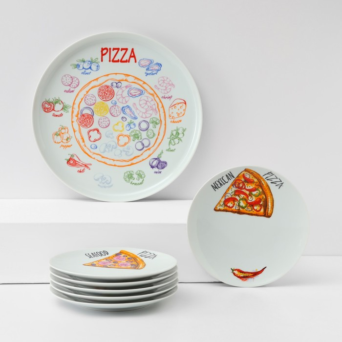 Набор блюд фарфоровый «Пицца», 7 предметов: 1 шт d=30 см, 6 шт d=20 см, рисунок МИКС