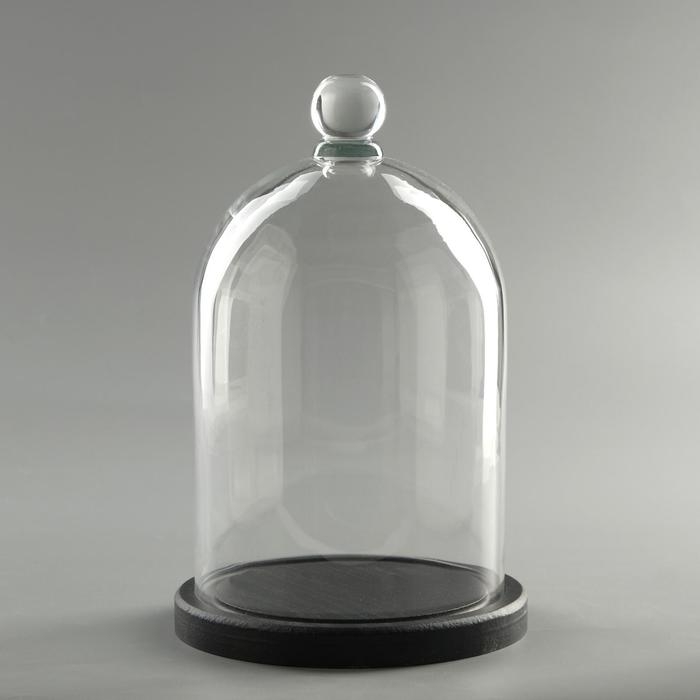 Стеклянный купол-клош с шариком на подставке "Родрик", 29х15 см, стекло, черный
