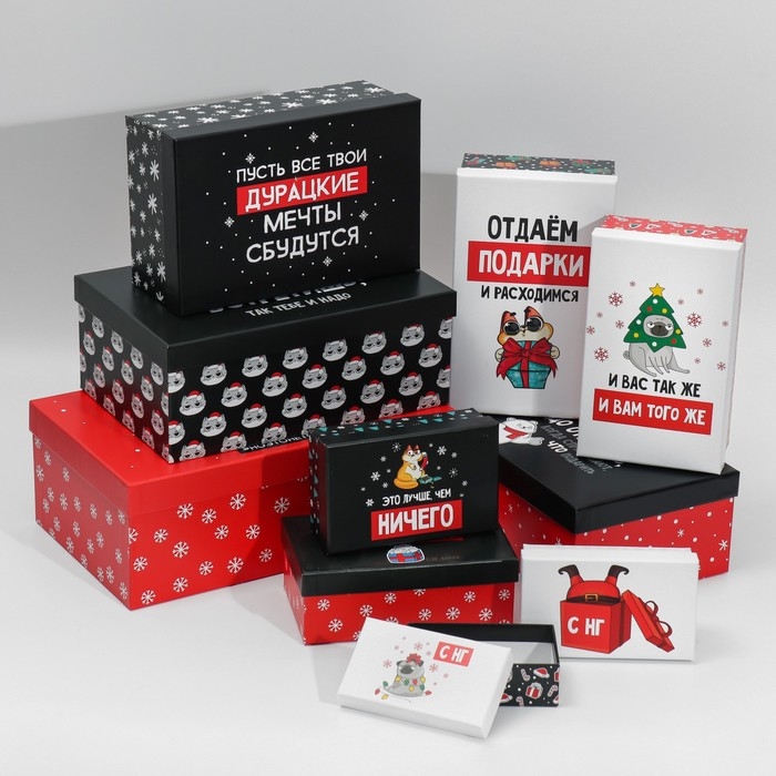 Набор подарочных коробок 10 в 1 «С НГ», 12 х 7 х 4 - 32.5 х 20 х 12.5 см, Новый год