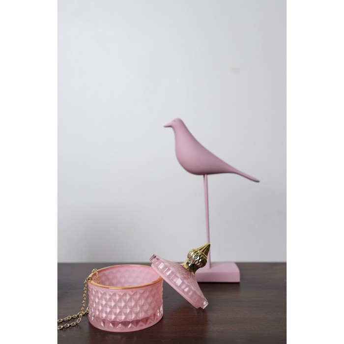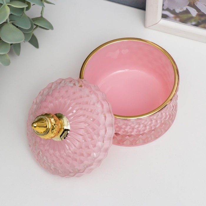 Шкатулка стекло "Ромбы и купол" розовый с золотом 11х8,5х8,5 см