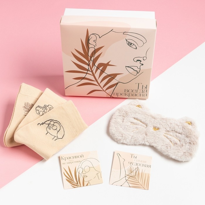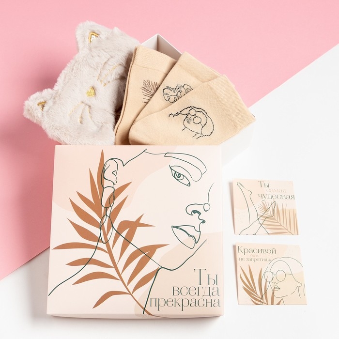 Подарочный набор "Прекрасна" маска для сна, носки 3 пары