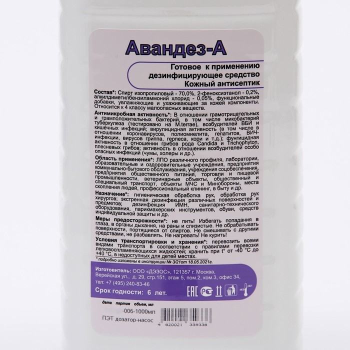 Антисептик Авандез-А, 1 л, с насос дозатором