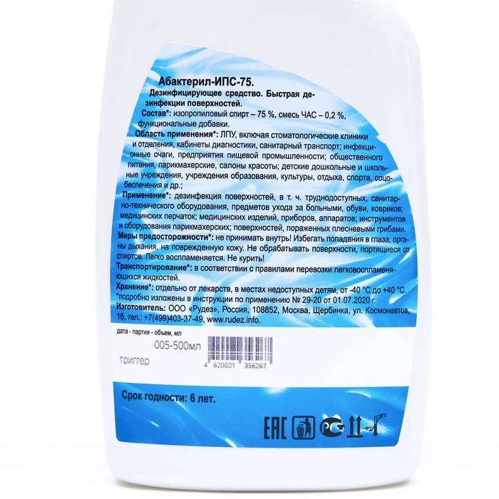 Дезинфицирующее средство Абактерил ИПС-75, 0.5 л, с триггером