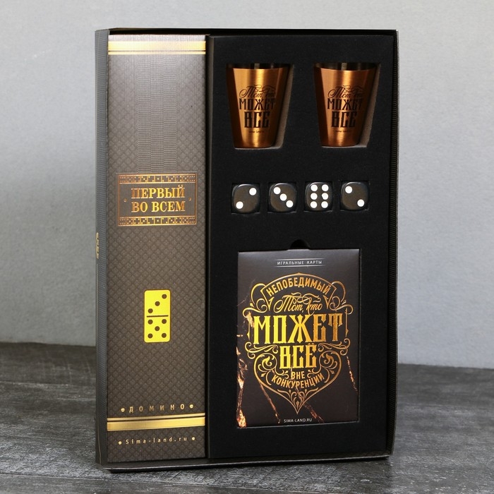 Подарочный набор «Тот, кто может все»: карты, домино, стопки 2 шт, кости игральные 4 шт