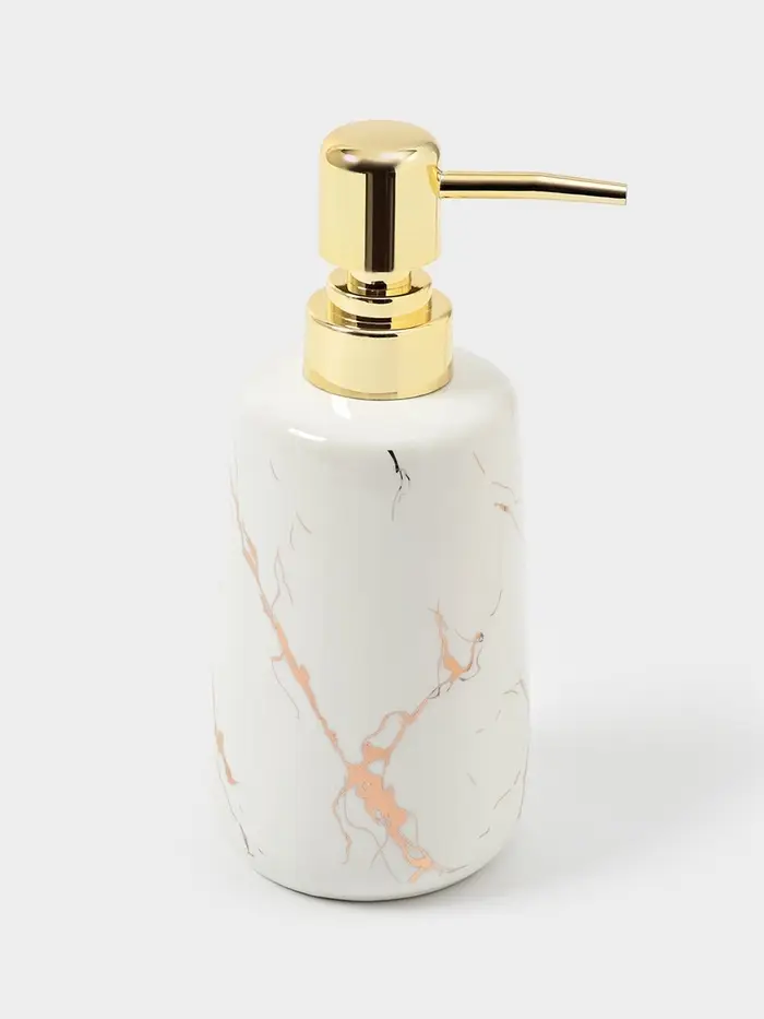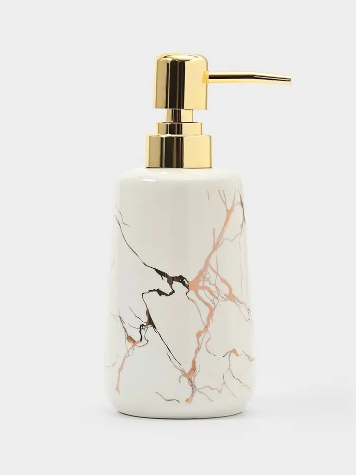 Керамический дозатор для жидкого мыла станет стильным дополнением вашей ванной комнаты или кухни. Такой аксессуар очень удобен в использовании. Просто перелейте жидкое мыло или моющее средство в диспенсер, а когда понадобиться, выдавите необходимое количество лёгким нажатием на помпу дозатора.