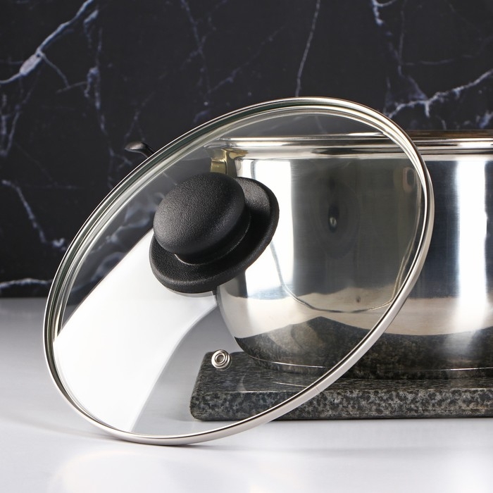 Крышка стеклянная для сковороды и кастрюли «Доляна», d=22 см, нержавеющий обод, пластиковая ручка