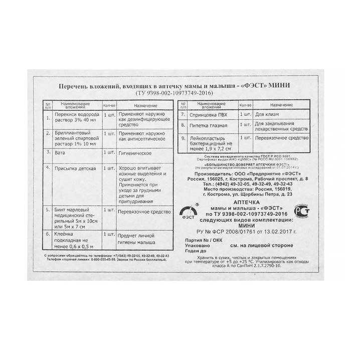Аптечка для мамы и малыша ФЭСТ №1, для повседневного ухода