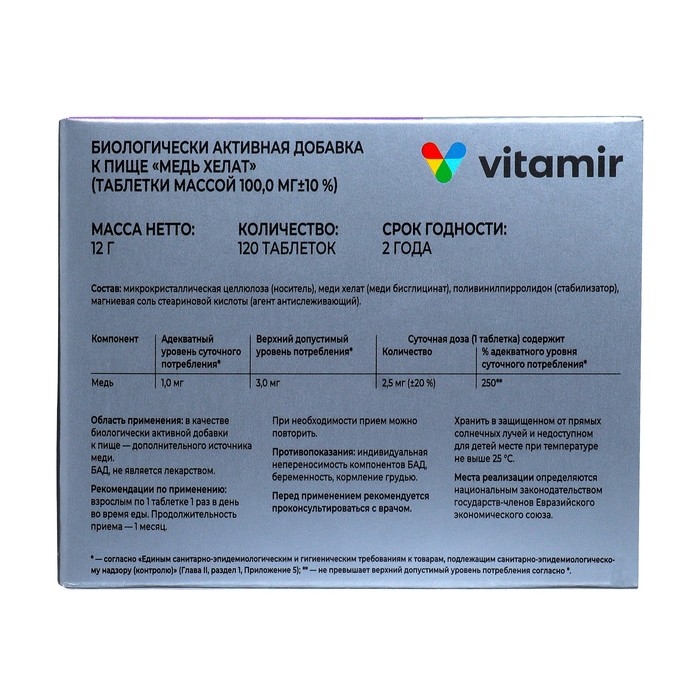 Медь хелат ВИТАМИР таб. №120