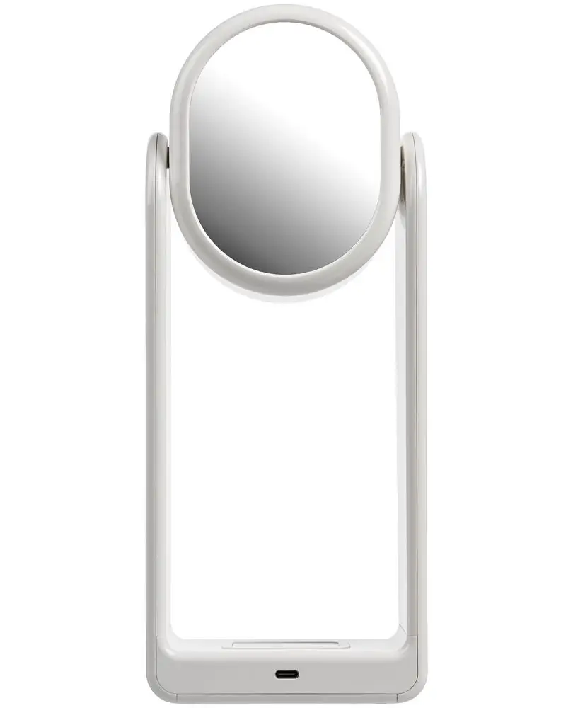 Настольная лампа с зеркалом и беспроводной зарядкой Tyro — это многофункциональное устройство: это и станция для беспроводной зарядки, и настольная лампа, и компактное зеркало.