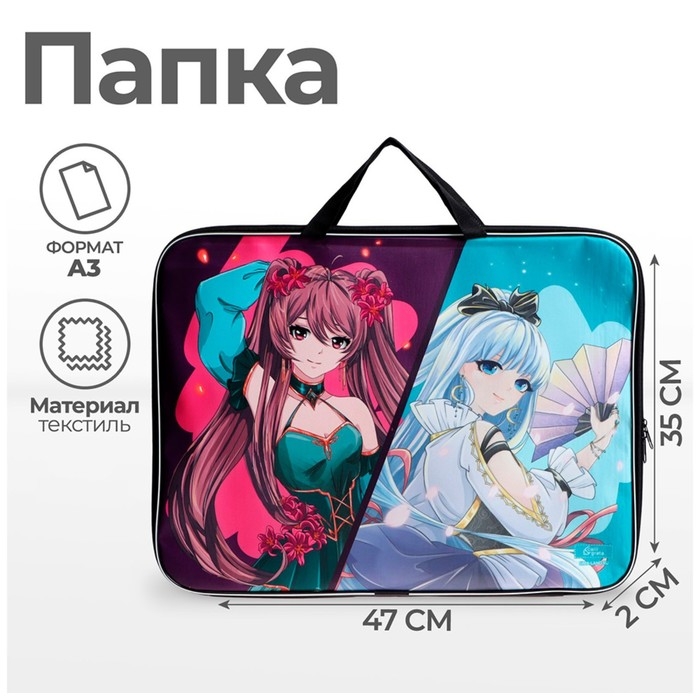 Папка для чертежей и рисунков А3, 470 х 350 х 20 мм, с ручками, текстильная, Calligrata "Аниме"