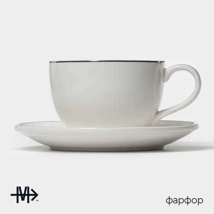 Чайная пара фарфоровая Magistro La Perle, 2 предмета: чашка 230 мл, блюдце d=15 см, цвет белый
