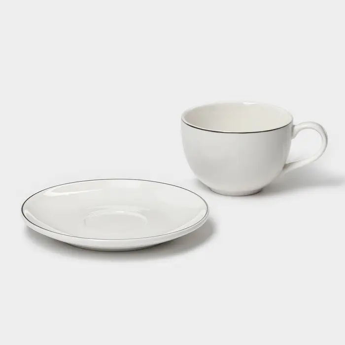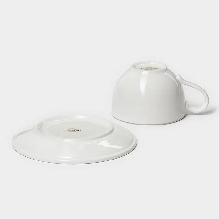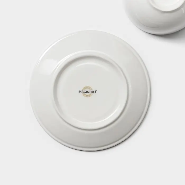 Чайная пара фарфоровая Magistro «Бланш», 2 предмета: чашка 300 мл, блюдце, цвет белый