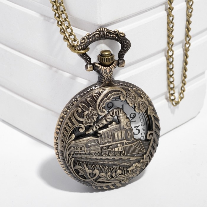 Часы карманные "Поезд", кварцевые, цепочка l-40 см, d-4.5 см