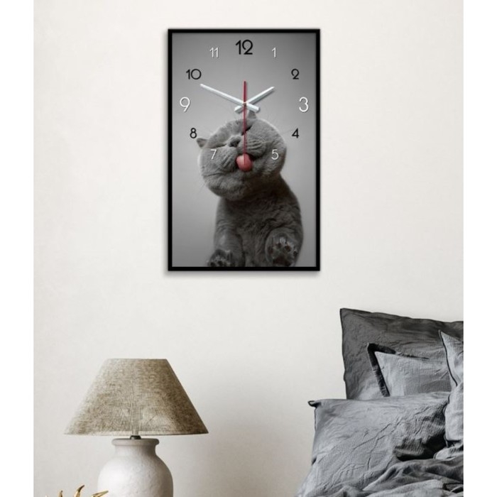 Часы-картина настенные, интерьерные "Котик", 57 х 35 х 4 см, бесшумные