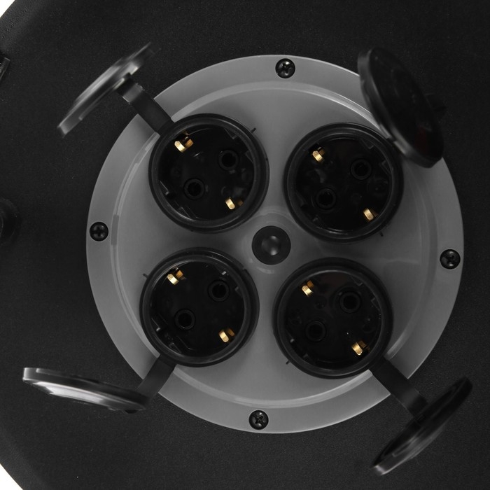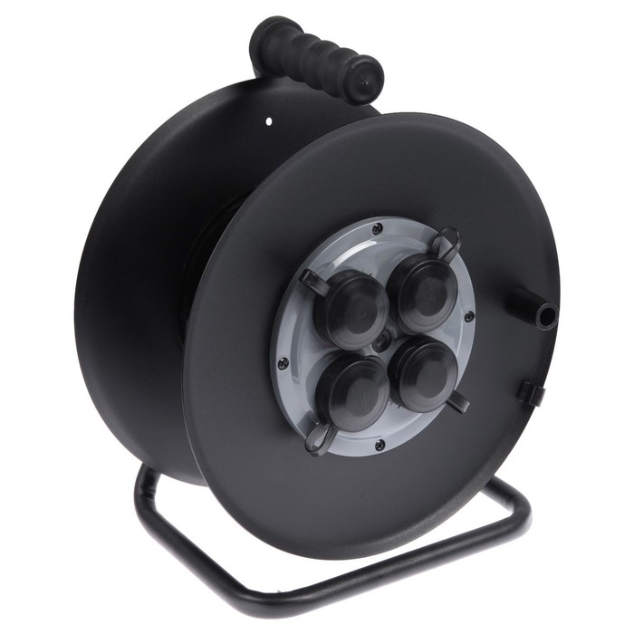 Катушка металлическая, 4 розетки, с/з, с крышками IP44, 16 А, УХЛ2, серая