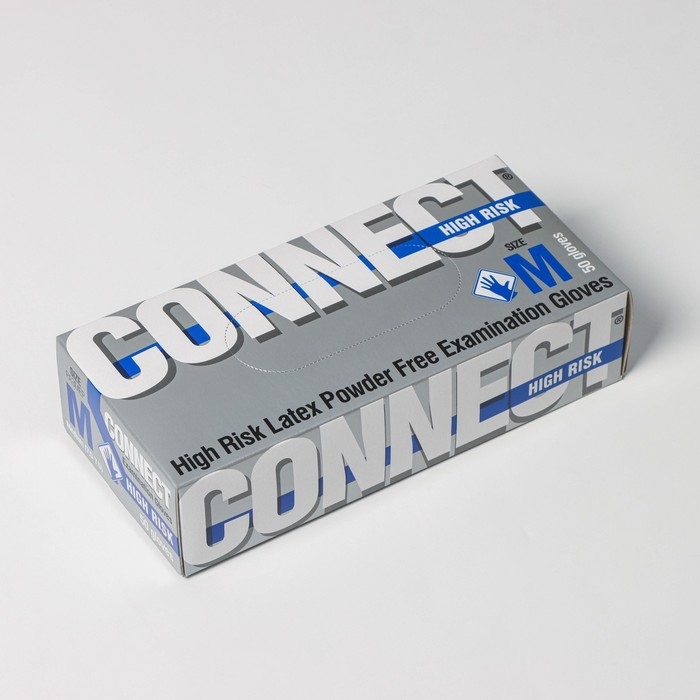 Перчатки латексные неопудренные High Risk, смотровые, нестерильные, текстурированные, размер M, 30 гр, 50 шт/уп (25 пар), цвет голубой