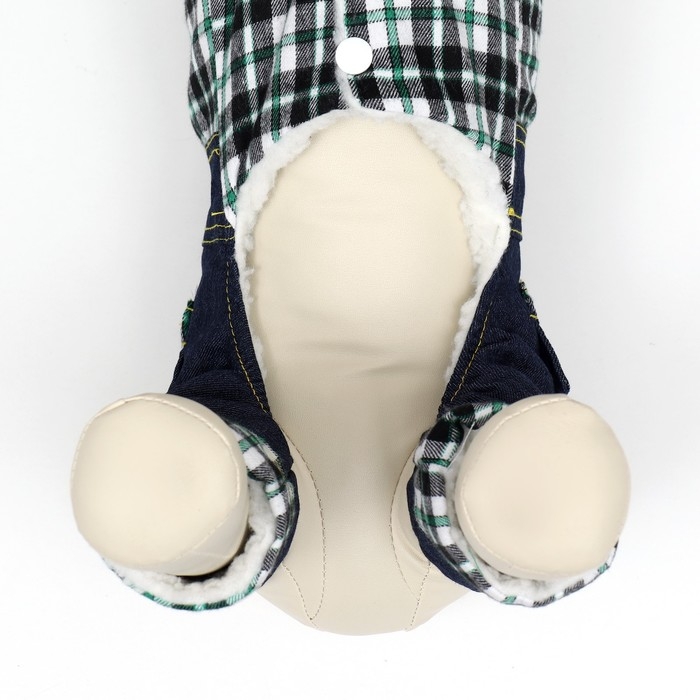 Элегантный дизайн комбинезона выполнен в виде джинсов и рубашки в клетку, который придает вашему питомцу оригинальный вид на прогулке.