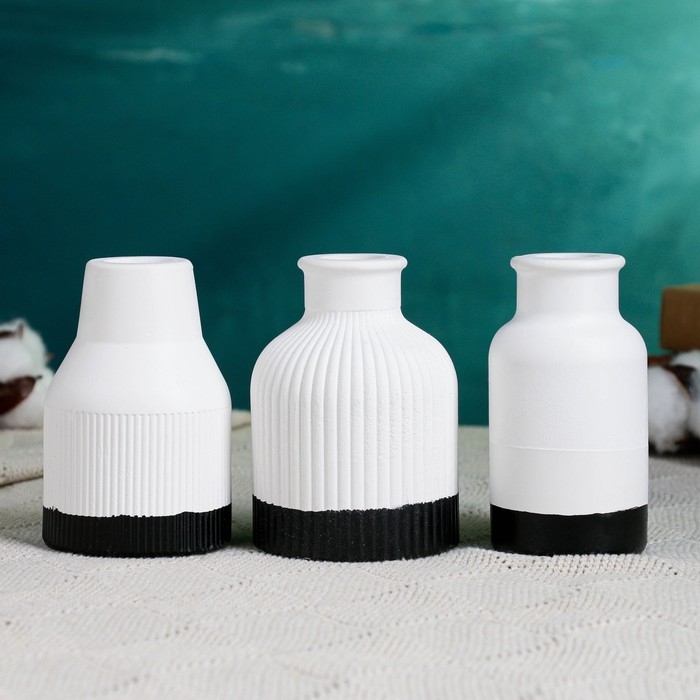 Набор ваз "Кувшинчики" 3шт, бело-черные, 10см