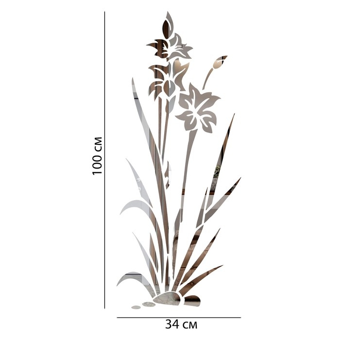 Наклейки интерьерные "Цветок", зеркальные, декор на стену, панно 100 х 34 см