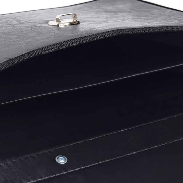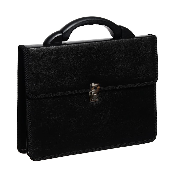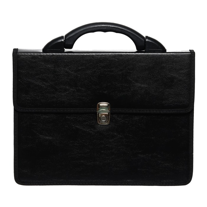 Портфель с пластиковой ручкой, меняющая положение, изготовлен из высококачественного кожзаменителя «Люкс», чёрного цвета, 2 – отделения.