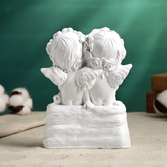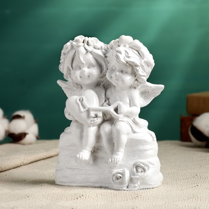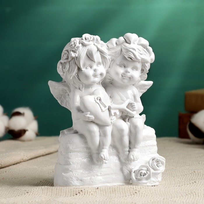 Фигура "Ангелы с сердцем на замочке" белый, 15х11см
