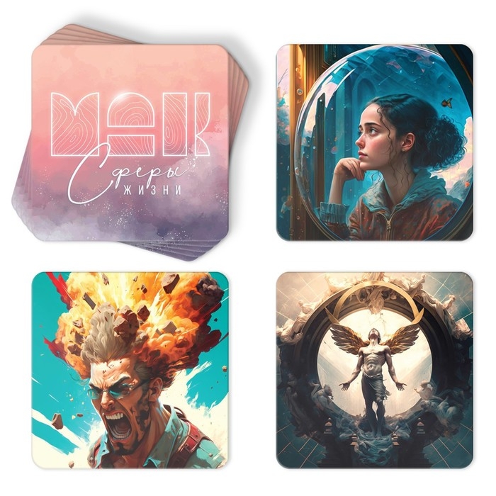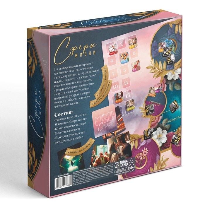 Трансформационная игра «Сферы жизни», 60 карт (9х9 см), 36 жетонов (3х3 см и 3,5х10 см), игровое поле (50х50 см),16+