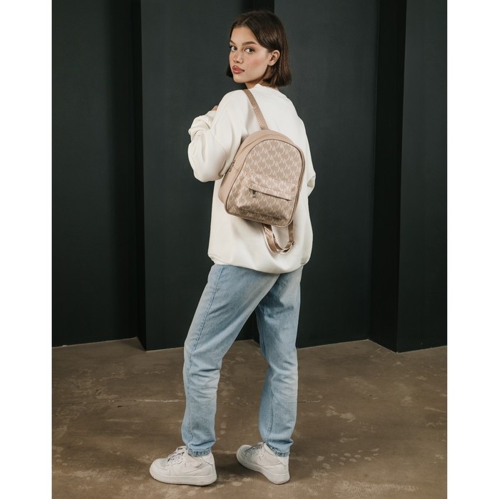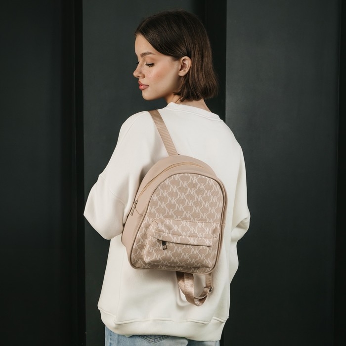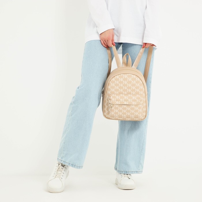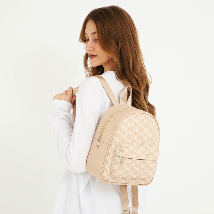 Рюкзак школьный из искусственной кожи с карманом NK 27х23х10 см, бежевый цвет