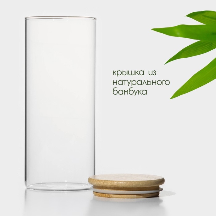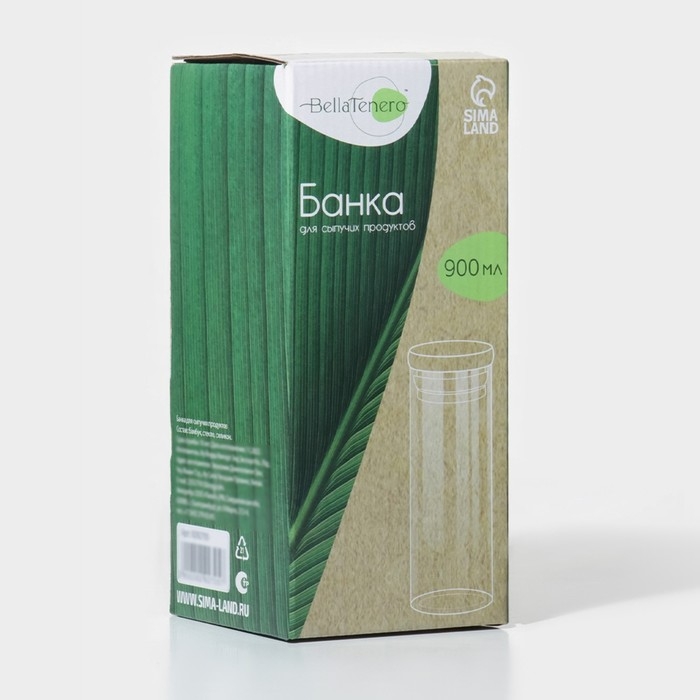 Банка стеклянная для хранения сыпучих продуктов BellaTenero «Эко», 900 мл, 8,5×20,5 см, с бамбуковой крышкой