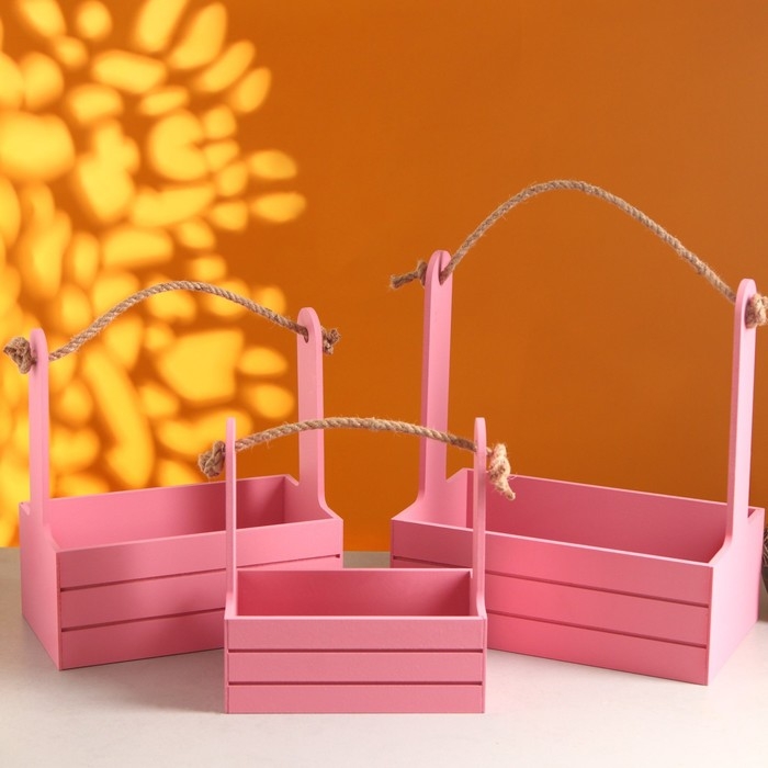 Набор кашпо деревянных 3 в 1 (29×18×33; 25×15×30; 21×12×23) "Аром", Розовый Коралл