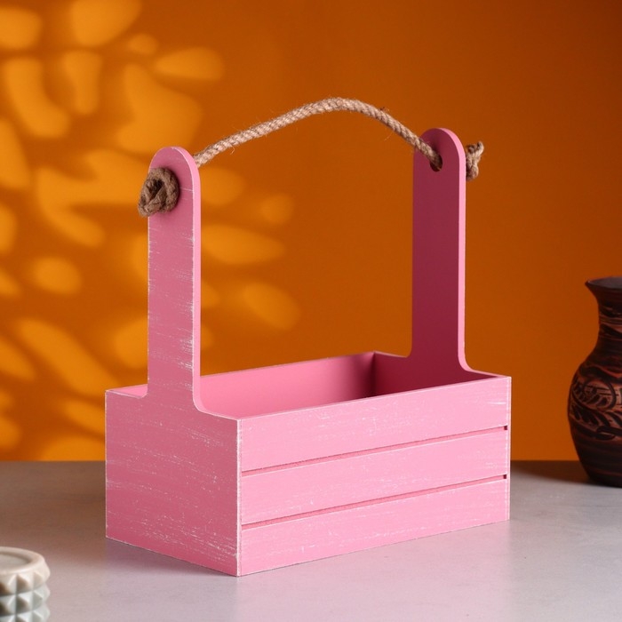 Кашпо деревянное 25.5×15×30 см "Аром", ручка канат, Розовый Коралл Прованс