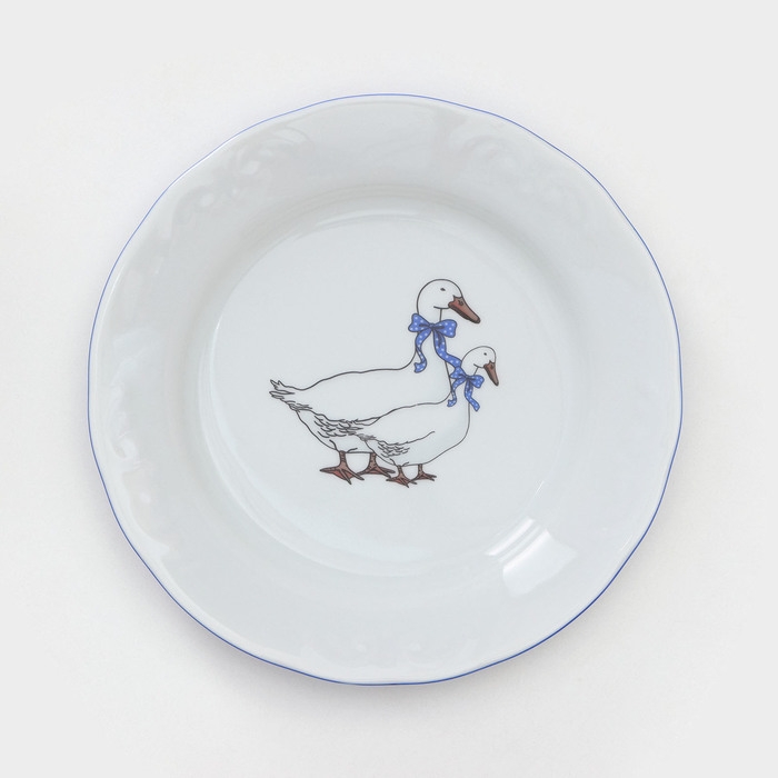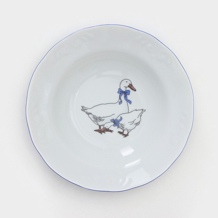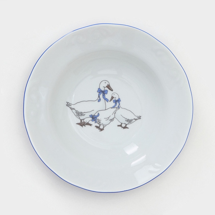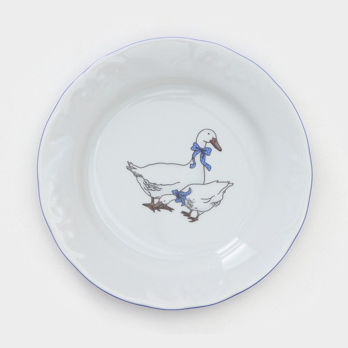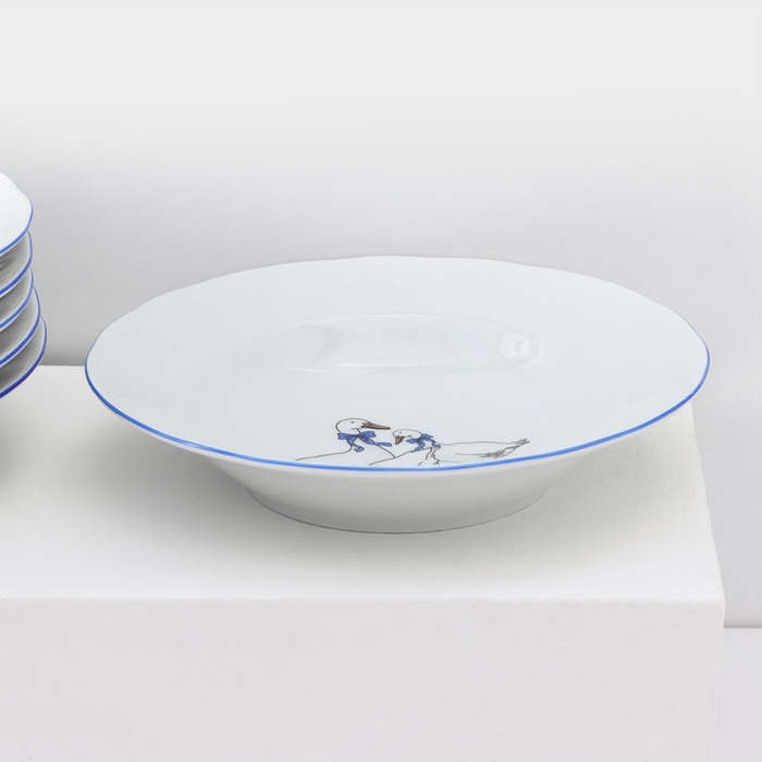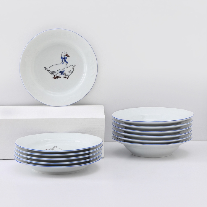 Набор фарфоровых тарелок «Гуси», 12 предметов: 6 супниц 350 мл, 6 плоских тарелок d=20 см, рисунок микс