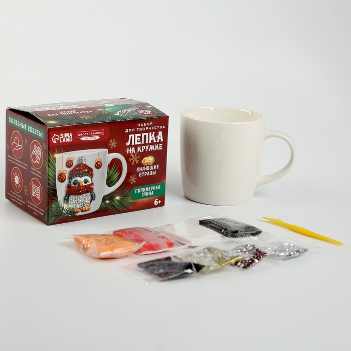 Новогодний набор для декора кружки полимерной глиной со стразами «Новый год! Пингвин в шапочке»