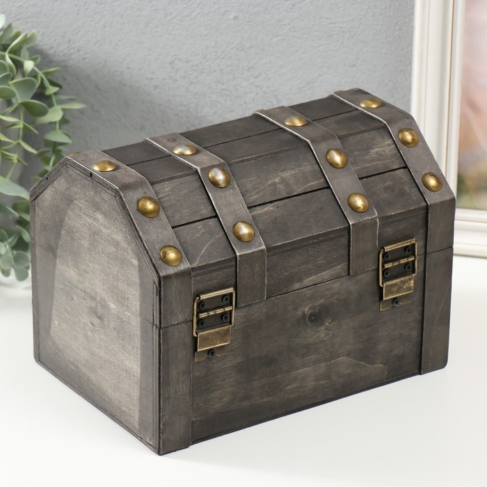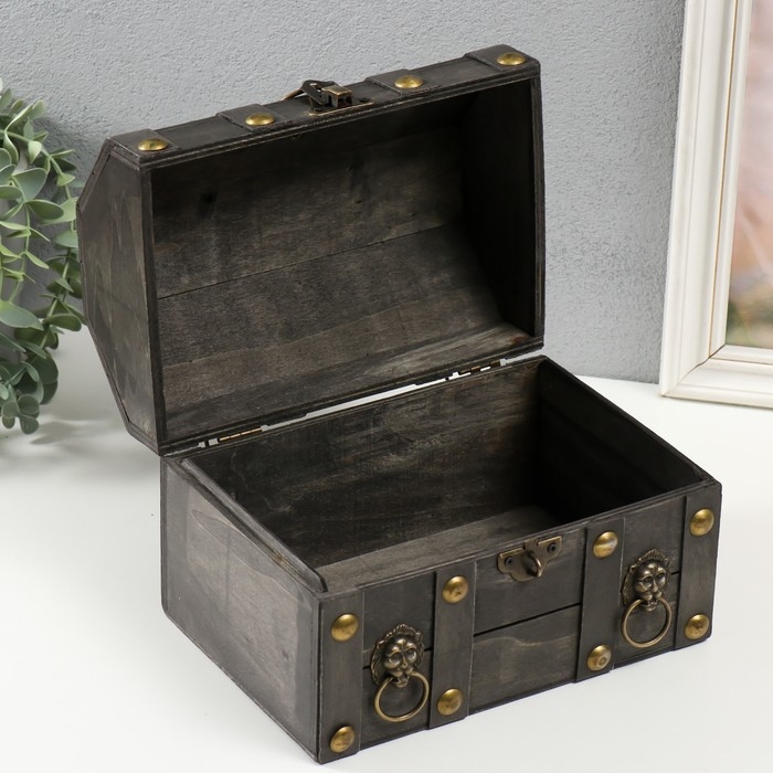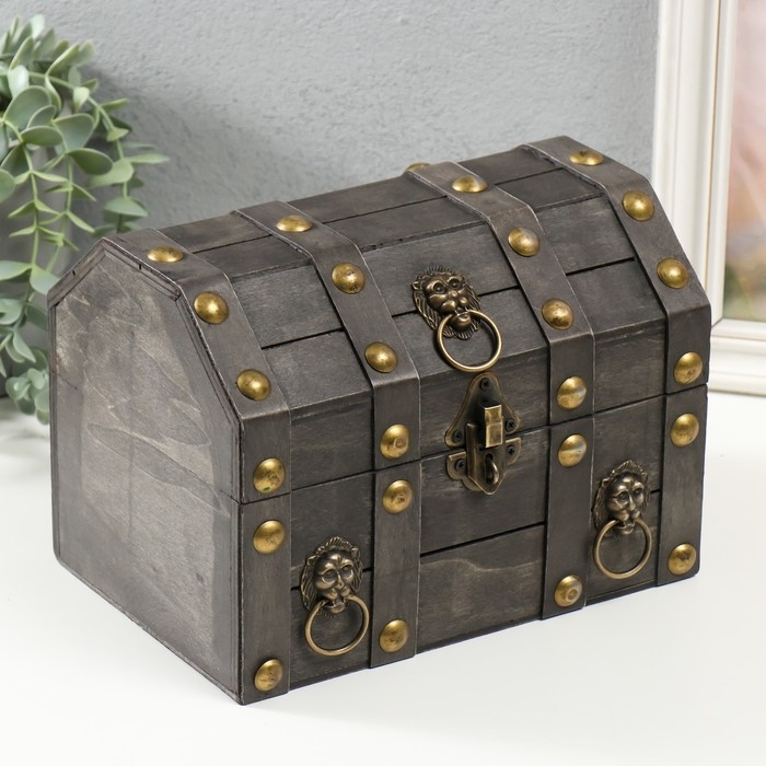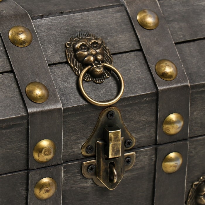 Шкатулка сундучок дерево "Лев. С заклёпками" стальная 16х15,5х22 см