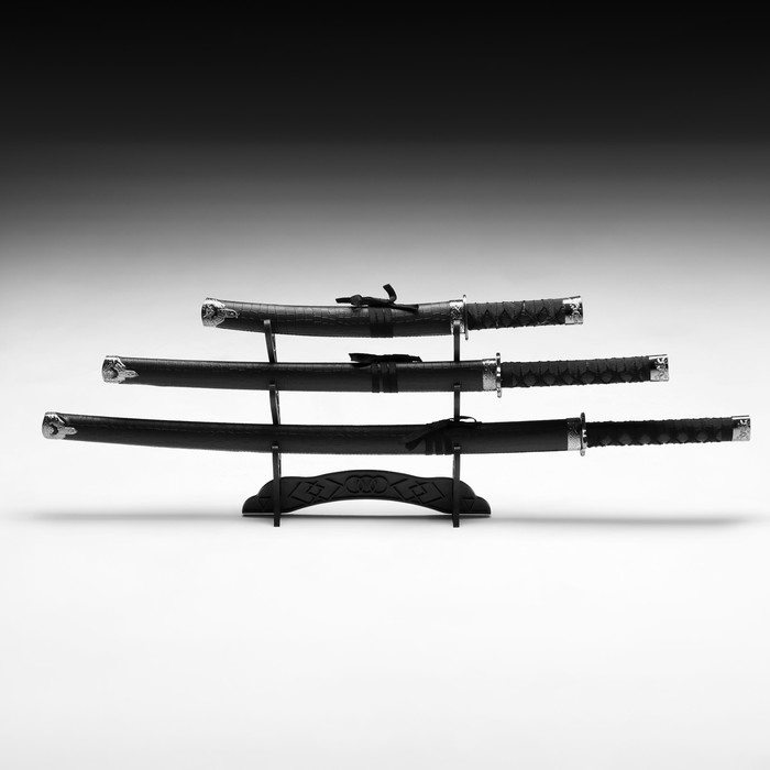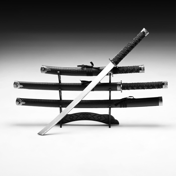 Сув. изделие катаны 3в1 на подставке, ножны кожзам, питон черный, матовый 46/70/89см